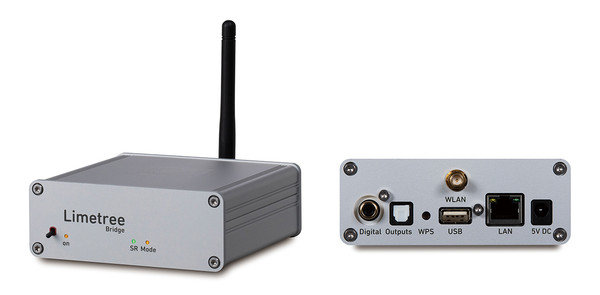 라임트리 네트워크는 외관상 브리지의 판박이다. 하지만 전면에 DSD LED와 3.5mm 헤드폰 출력 잭이 달렸고, 후면에 아날로그 출력단(RCA)이 달린 점이 가장 큰 차이다. 짐작하셨듯이 라임트리 네트워크는 DAC을 내장하고 아날로그 출력단을 갖춘 본격파 네트워크 플레이어이자 헤드폰 앰프다. 유선 랜과 무선 와이파이, 블루투스, UPnP/DLNA를 지원한다. DAC는 일본 아사히 카세이의 AK4452 칩을 채널당 1개씩 썼다. 이 칩은 최대 32비트/768kHz PCM 음원과 DSD 256 음원을 처리할 수 있지만, 린데만에서는 PCM의 경우 24비트/384kHz로 제한했다.