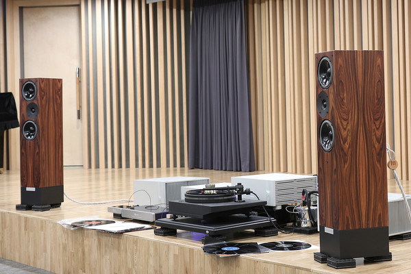 아날로그 소스기기는 국내 아날로그 애호가들에 큰 사랑을 받고 있는 제품으로, 쿠즈마 스타비 R이 자리했다. 앞서 이야기한 입실론의 VPS-100 포노 스테이지와 MC-20L 스텝 업 트랜스포머 라지와 매칭하여 진행되었는데, 확실히 쿠즈마가 왜 그토록 큰 관심과 사랑을 한 몸에 받고 있는지 알게 하는 완벽한 하이엔드 아날로그 사운드를 만들어냈다. 진득하게 LP 소스만 오랜 시간 듣는 것도 흔치 않은 경험인데, 그 자연스러운 사운드와 풍부한 질감, 기분 좋은 다이내믹까지 그야말로 쉽게 잊히지 않는 무대였다.