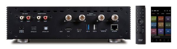 무선 연결도 강력한데, 4.0 버전의 블루투스를 탑재했고, 스트리밍을 위한 에어플레이, DLNA 역시 지원하여, 보다 간편히 음악을 재생할 수 있다. 이런 무선 소스기기로서의 성능도 우수하지만, 더욱 놀라운 것은 여기에 인티앰프까지 붙였다는 점이다. 스피커와 TV만 더하면 영상과 음악 모두 가능하다는 뜻이다.