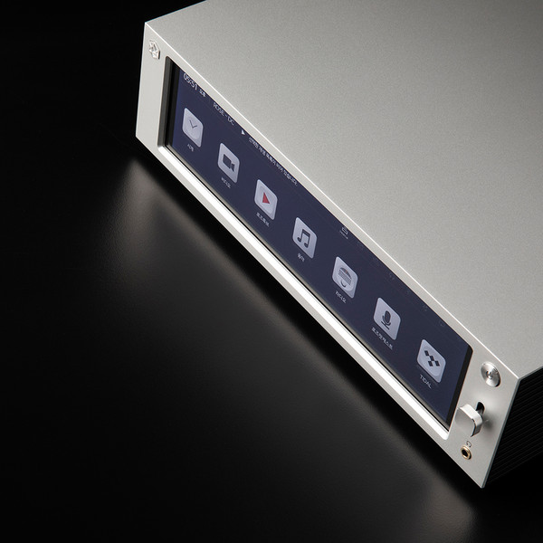 본 기의 외관을 보면 무척 콤팩트하다. 무게만 해도 2.3kg에 불과하다. 하지만 모던한 느낌의 고품질 아노다이징 알루미늄으로 프런트와 윗 부분을 처리해서 확실히 고급스럽다는 인상이 앞선다. 또한 8.8인치 광시야각 디스플레이를 적용하여 디자인적인 장점도 돋보이며, 여기에 터치 패널 방식까지 적용하여 사용성에서의 편리함은 이루 말할 수 없다. 마치 스마트폰을 활용하듯 컨트롤할 수 있는데, 오디오 업계에서는 쉽게 보기 힘든 레이아웃이다. 한편 최대 출력은 100W. 실제 시청 시에 매칭한 북셀프 스피커를 무리 없이 구동했으므로, 중대형기를 들이밀지 않는다면 충분히 경쟁력이 있는 스펙이라 하겠다.