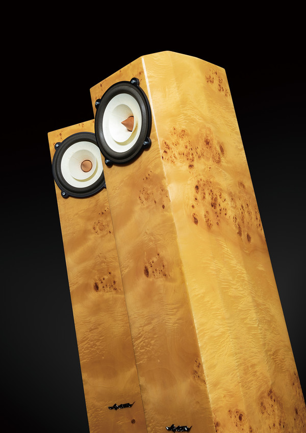 일단 기본형으로 말하면, 여기에 장착된 드라이버는 AC-1n이다. 이 풀레인지 유닛을 살펴보면, 중앙에 목재로 만들어진 큼직한 페이즈 플러그가 보인다. 어떤 미세한 공진이라도 다 잡아내기 위한 조치다. 또 진동판은 매우 섬세하고, 고품위하게 만들어졌다. 명품을 제조하는 장인의 손길과 통하는 바가 있는 만듦새다.