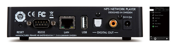 NP5 프리즈마는 크롬캐스트가 내장되어 있으며 에어플레이 2, 룬 레디, 스포티파이 커넥트를 지원한다. 그리고 이더넷과 와이파이는 물론 블루투스로도 사용할 수 있으며, 디지털 출력은 코액셜과 옵티컬이 있고, USB A 단자에는 외장 하드 등을 연결해 직접 재생 가능하다. PCM 24비트/192kHz, DSD 128까지 지원한다. Prisma라는 전용 어플리케이션(애플, 안드로이드)이 있으며, 멀티룸 기능도 지원한다. 전원은 외장 어댑터로 DC 5V 2A로 전원을 공급받는다. 크기는 143×36×125mm(WHD), 무게는 0.5kg로 매우 좁은 공간에서도 설치가 가능하다.
