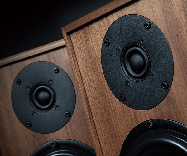 잠깐 스펙을 보면, 전형적인 2웨이 북셀프형이라는 점이 우선 눈에 띈다. 트위터는 1인치가 채 안 되는 22mm 구경인데, 본 기를 위해 특별히 새로 제작했다고 한다. 고역 특성이 양호해서 25kHz까지 곧장 뻗는다. 이 작은 몸체를 생각하면, 의외로 광대역을 커버하는 셈이다. 미드·베이스는 15cm 구경으로, 물론 그리 크지는 않다. 그러나 동사 전통의 폴리머 소재로 만들었고, 중앙에 뿔 모양의 페이즈 플러그를 달아 적절하게 제어하고 있다. 참고로 크로스오버 포인트는 4.2kHz.