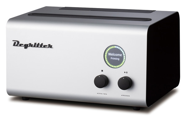 디그리터의 초음파 레코드 클리너는 캐비테이션(Cavitation - 초음파에 의해 용액에 미소한 공동(空洞)을 만드는 현상)을 이용해 LP를 상하게 하지 않으면서 깨끗하게 세척하는 제품으로, 콤팩트해 크게 자리를 차지하지 않고, 작동시키면 스스로 LP를 회전시키며 세척하고 건조시켜 사용이 쉬운 완전 자동 세척기다. 또한 12인치 음반뿐만 아니라 7인치나 10인치 음반도 세척할 수 있다. 동사의 홈페이지에는 세척 전 음반과 세제나 세척 용액을 사용하지 않고 증류수로만 5분 동안 세척한 음반을 150배, 500배 확대해서 보여 주고 있는데, 미세한 먼지 한 톨 없이 깨끗해지는 것을 알 수 있다.
