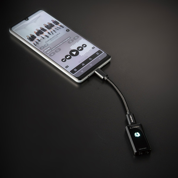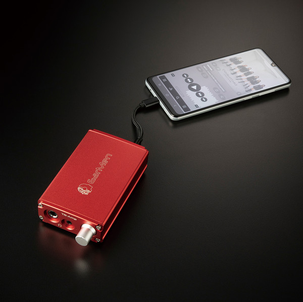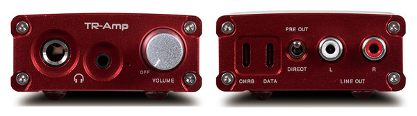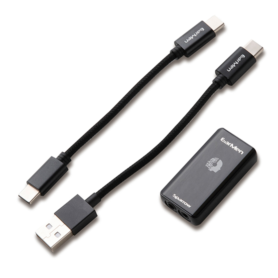 이어맨의 TR-Amp는 USB DAC, 프리앰프, 헤드폰 앰프 기능을 모두 가지고 있는데, 스패로우와 달리 크기가 66×30×129mm(WHD)로 웬만한 모바일 기기 크기에 두께는 더 두꺼워 제법 한 덩치 해서 거치형 제품으로 보이지만, 내장된 3700mA 배터리로 구동해 최대 10시간 플레이가 가능한 휴대용 제품이다. TR-Amp는 ESS 사의 사브레 32 ES9038Q2M라는 최신 DAC를 내장하고 있어 PCM 32비트/384kHz, DSD 256, MQA 같은 고음질 음원 재생을 지원하며, 타이달 마스터스, 코부즈 하이 레졸루션 스트리밍 재생도 할 수 있다. 또한 왜곡이 매우 적고 잡음도 적은 TI 사의 TPA6120을 헤드폰 앰프에 적용했으며, 초저 ESR 탄탈 커패시터와 같은 고품질 부품으로 이루어진 전원부, 4층 금도금 PCB, 풀 알루미늄 하우징 등으로 노이즈를 최소화하고 있다. TR-Amp는 안드로이드 폰과 아이폰 모두 연결을 지원하며 윈도우즈, 맥 PC 모두 연결할 수 있다. 입력 단자는 USB C인데 전원용 USB C 단자를 따로 마련해 놓았다. 6.3mm, 3.5mm 출력 단자를 갖추고 있고 2개의 헤드폰을 동시에 연결할 수 있으며 최대 400mW의 출력을 내므로 거의 모든 헤드폰을 구동할 수 있다. RCA 라인 아웃도 있는데, 프리 아웃 또는 다이렉트 아웃으로 설정할 수 있다.
