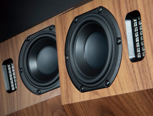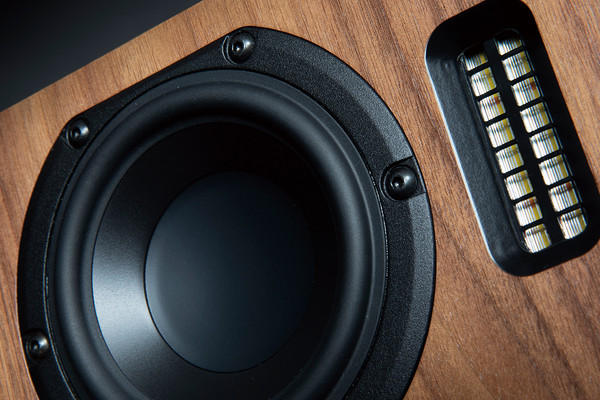 이번에 만난 알파는, 전체적으로 아이오타 시리즈에 속한다. 여기엔 가장 베이직한 아이오타부터 알파, 엑스플로러 등으로 이어진다. 본 기는 정확히 중간에 위치한 것이다. 내부 구성은 어찌 보면 심플하다. 상부에 두 개의 유닛이 나 있고, 우퍼는 바닥을 보고 배치되어 있다. 자연스럽게 우퍼에서 나오는 음은 바닥을 치고 사방으로 방사되게 설계되었다. 한편 상단에 있는 두 개의 유닛 중 하나는 EMIT 방식으로 만들어진 트위터이고, 또 하나는 미드·베이스다. 본 기는 3웨이가 아닌 2.5웨이 구성이라고 한다. 따라서 상부에 있는 미드·베이스가 거의 풀레인지에 버금가는 역할을 하고 있으며, 박스에 숨겨진 우퍼가 이 중 저역부만 악센트를 주는 형식으로 배치되어 있는 셈이다.