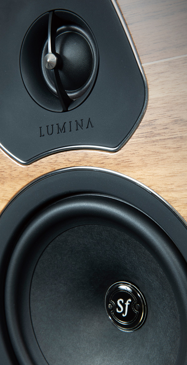 시청기는 상위 모델인 소네토에 적용된 기술을 채택해 사실상 동일한 시리즈라고 봐도 무방한 실속기다. 상위 기종과 동일한 설계 방식인 DAD(Damped Apex Dome) 트위터를 장착하고 있는데, 이 트위터는 핸드 코팅 실크 돔 타입 진동판을 채용하고 있으며, 활처럼 생긴 다이캐스트 알루미늄 구조물을 통해 돔 진동판의 정점에서 댐핑시켜 고역 롤오프의 원인이 되는 역위상 행동을 피하는 기술이 적용되어 있다. 일반적으로 스피커는 트위터에서 음색이 대부분 결정된다. 하이엔드 제품들을 봐도 얼마나 트위터에 연구 개발이 이뤄졌는지가 관건이고, 리본 트위터가 그 한 예가 될 것이다. 거기에 펄프와 천연 섬유 소재로 만들어진 150mm 미드레인지, 역시 동일한 사이즈의 펄프 소재로 만들어진 2발의 우퍼가 적용되어 있는데, 이 드라이버들은 모두 루미나 시리즈를 위해 새롭게 개발된 것이다.