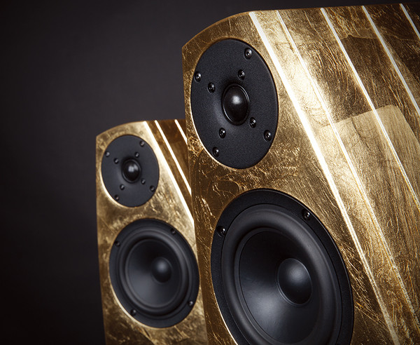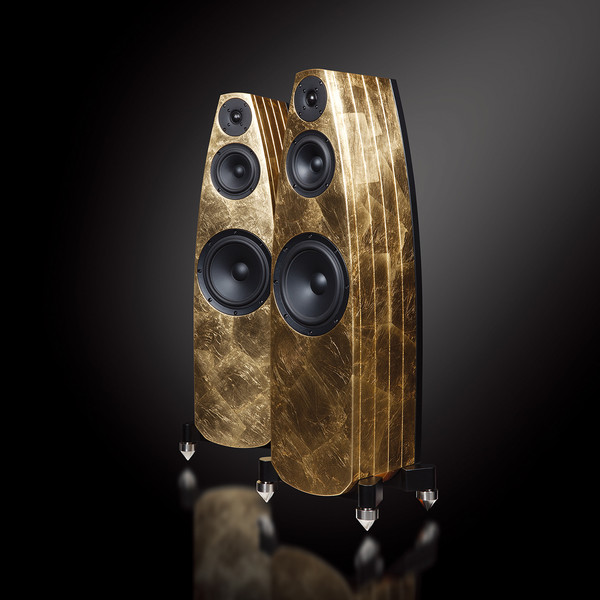 무엇보다도 시선을 끄는 것은 황금색의 인클로저이다. 얼른 봐서 마치 황금색의 금속재로 보일 수도 있지만, 다가서서 보면 금박을 일일이 붙인 후 투명 래커로 마감한 것을 알 수 있다. 마치 이집트의 피라미드 아래에서 건져 올린 듯한 강렬함과 위압감이 있다. 그렇다고 천박하게 번득이는 골드 컬러가 아니라 묵직하고 세월의 흔적이 담겨 있는 황금의 원석 같은 컬러이며, 이런 마감은 강력하게 시선을 끌게 된다. 그러나 이런 컬러만 있는 것도 아니고 실버, 코퍼, 브론즈 색상이 있고, 악어가죽 무늬의 금·은·동 마감, 그리고 다양한 색상의 피아노 마감도 마련되어 있다.