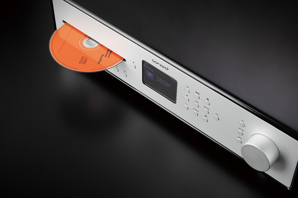 프런트와 노브를 솔리드 메탈로 처리한 가운데, 우드 케이스에 담은 디자인은 일단 매력적이다. 독일 바우하우스의 전통을 보는 듯하다. 중앙에 큼지막한 디스플레이 창이 보기 좋다. 꺼놓고 있으면 시계로도 쓸 수가 있다. 당연히 좌측에 난 슬롯에 CD를 삽입하면 플레이가 된다. 또 턴테이블도 연결할 수 있으며, 놀랍게도 MM 카트리지를 쓸 수 있도록 배려되어 있다.