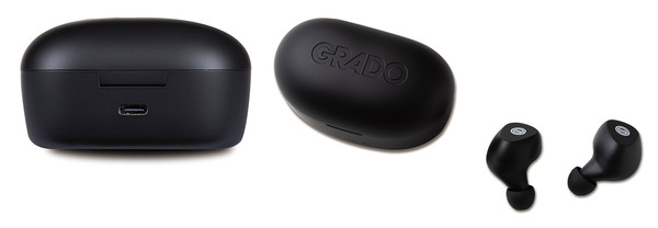 GT220은 사진에서 다 느껴질지는 모르겠지만, 무광 블랙의 고급미가 굉장히 멋지다. 요즘 충전 케이스 트렌드가 화려한 색으로 치장되어 있는 경우가 많은데, GT220은 블랙·심플·모던의 진리를 멋지게 보여준다. 또한 유선형 디자인을 채택하여, 한 손에 부드럽게 잡히는데, 질감과 더불어 그립감도 굉장히 좋은 편. 충전 케이스에는 ‘GRADO’를 제법 크게 강조하고 있는데, 블랙 톤으로 음각되어 있어서, 크게 신경 쓰이는 편은 아니다. 케이스를 열면 같은 톤 컬러의 이어 버드가 등장하는데, 하우징에는 새로운 스타일의 G 마크가 고급스럽게 수놓아져 있다. 참고로 이 새로운 G 마크를 그라도 홈페이지 로딩 화면으로도 쓰고 있는데, 꽤 감각적으로 잘 디자인된 인상이다. 무선 헤드폰인 GW100 역시 이 마크를 새롭게 장착했다.