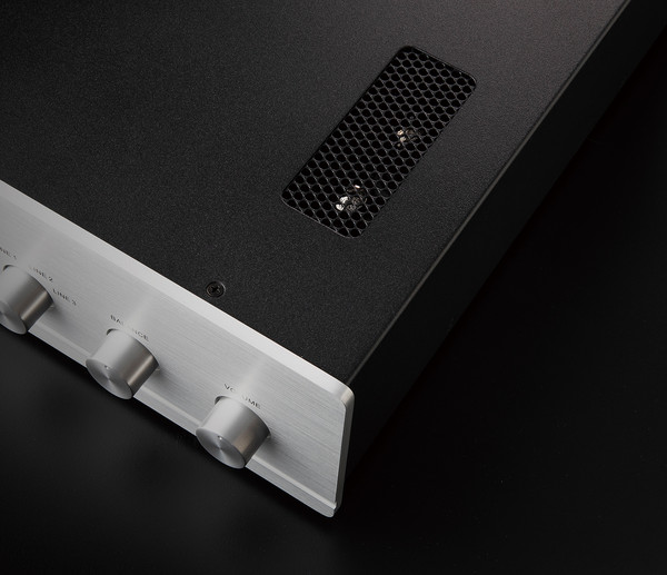 내용을 살펴보면, 12AU7로 구성된 프리부가 연결되고, 솔리드스테이드 포노단도 보인다. 이 포노단은 절대 장식품이 아니다. 로그 오디오에 걸맞는 수준을 확보하고 있다. MM과 MC 모두에 대응하는 대목에서 본 기를 얼마나 정성껏 만들었는지 짐작하게 한다. 당연히 맨 왼편에 보이는 헤드폰 단자는 그냥 액세서리가 아니다. MOSFET 소자를 이용해서 대부분의 헤드폰에 대응할 수 있도록 했다. 뭐 하나 대충한 것이 없다. 중간에 보이는 셀렉터 단은, 긴 바를 이용해서 뒤편의 입력단과 다이렉트로 결합되고 있다. 정말 빠른 신호 경로를 구축한 셈이다.