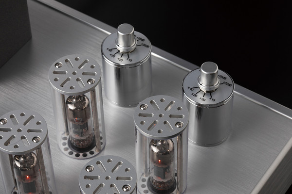 상판을 보면 왼쪽 뒤편에 전원 트랜스, 오른쪽 뒤편에 니켈 퍼멀로이를 코어로 한 좌우 채널 승압 트랜스가 장착됐다. 각 채널 승압 트랜스 앞에는 증폭관 E180CC가 2발씩 총 4개가 꽂혔고, 그 왼쪽에는 전압 레귤레이터 역할을 하는 3극관 7233과 전압 에러 디렉터 역할을 하는 5극관 5654가 장착됐다. 트랜지스터 대신 진공관을 정전압 회로에 투입하면 다이내믹 레인지가 넓어지고, S/N비가 좋아지는데, 이 역시 올닉이 선택한 정공법이다.