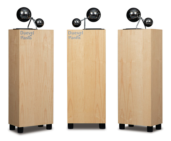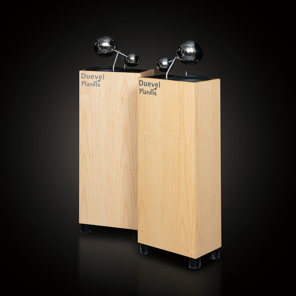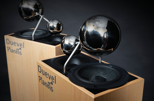 듀에벨의 플래닛츠는 15cm 크기의 케블라 콘 우퍼와 25mm 크기의 PE 진동판을 사용하는 혼 트위터로 구성된 2웨이 스피커다. 사각형 인클로저 어디를 봐도 덕트가 보이지 않아서 밀폐형인가 싶었는데, 스펙을 보니 베이스 리플렉스. 덕트와 케이블 연결 단자는 바닥에 있다. 통을 들어야 나타난다. 그런 관계로 카펫 같은 곳에 올려 세우는 것보다는 약간 딱딱한 바닥에 거치하는 것이 옳겠다. 그리고 감도가 85dB로 매우 낮다. 그러나 출력이 떨어지는 50W 미만의 반도체 앰프로도 상관없다는 것이 제작사의 설명이고, 이 또한 이 스피커의 큰 장점.
