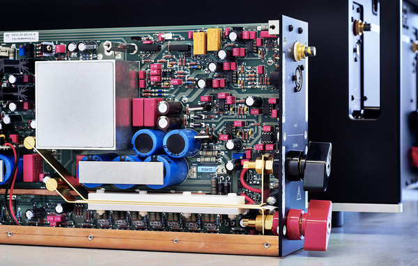 소울루션만의 최첨단 전원부로 설계되어 빠른 반응이 특징이다. 무려 600VA급 전원 트랜스가 4개나 동원되어 있다. 덕분에 펄스 출력이 6,000W 이상이 된다. 다시 말해 과부하가 잔뜩 걸려도 펄스 출력에까지 이르지 못한다. 당연하지 않은가. 일체 네거티브 피드백이 걸리지 않았고, 10나노세컨드 이하의 트랜싯 타임 특성을 자랑한다. 자체 밀봉된 모듈에 수납되어 외부 진동에도 강한 특성을 갖고 있다. 일체 위상이 흐트러지거나 특정 대역에서 피크나 딥이 없는 완결주의를 표방한 결과물이다.