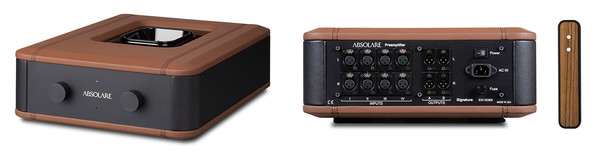 압솔라레의 싱글 엔디드 트라이오드 프리앰프는 신호의 순도, 공진 제어, 전원에 중점을 두어 개발한 만큼, 불필요한 기능이나 복잡한 회로들을 적용하기보다는 충실하게 퓨어 사운드에 초점이 맞춰졌으며, 이를 통해 뛰어난 디테일과 다이내믹 특성을 유지하고 있다. 12AU7 진공관 2개를 사용하고 있는데, 철저히 싱글 엔디드 트라이오드 결합과 뮤 팔로워 설계를 통해 낮은 출력 임피던스를 유지했으며, 간결한 회로이지만 최상의 음질 중심의 설계가 돋보인다. 볼륨의 경우 완전한 아날로그 디스크리트 타입으로, 릴레이와 정밀 저항으로 구성된 이상적인 어테뉴에이터 타입으로 제작되어 64스텝으로 정교하게 조정이 가능하며, 입력 시그널의 접점에 대한 불안 요소를 제거했다. 전원부에는 룬달 트랜스와 고속 쇼트키 다이오드를 적용하고, 전원 필터에는 3단 필터 구성과 최고급 문도르프 커패시터를 적용해 순도 높은 전원 공급과 다이내믹 레인지 유지에 중점을 두었다.