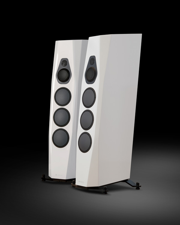 가격 4600만원(Velvetec), 5000만원(Piano) 구성 3웨이 5스피커 인클로저 베이스 리플렉스형 사용유닛 우퍼(3) 16.8cm 아큐톤 셀, 미드레인지 9cm 아큐톤 셀 세라믹, 트위터 3cm 아큐톤 셀 세라믹 임피던스 4Ω 출력음압레벨 89dB/2.83V/m 내부 케이블 선재 모가미(Mogami) 바인딩 포스트 아르젠토 크기(WHD) 42.4×128×53.4cm 무게 72kg