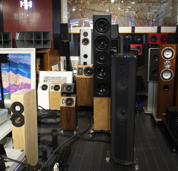 그리고 강승찬 사장은 의미심장한 미소를 지으며 다음 이야기를 덧붙인다. 크게 기대하지 않은 아이오타(IOTA) 시리즈에 크게 한 방 먹었는데, 스피커 크기를 넘어서는 압도적인 무대에 크게 감동을 받았다고 한다. 니트 어쿠스틱스답게 음향적인 아이디어가 굉장히 뛰어나고, 가격대와 크기를 생각하면 정말 믿을 수 없는 사운드가 펼쳐진다는 것. 실제 한음오디오를 방문했을 때도 가장 먼저 자신 있게 들려준 것도 바로 아이오타 시리즈의 알파(ALPHA). 실바톤 어쿠스틱스의 진공관 하이브리드 은도금 트랜스 JI-107 인티앰프와 매칭했는데, 처음에는 대형기에서 나오는지 착각할 정도로, 스피커 크기를 가늠할 수 없는 리얼 무대가 펼쳐졌다. 참고로 알파의 크기는 무려 20×45×16cm(WHD). 특히 세밀한 표현과 음의 그레이드가 그야말로 대단했는데, 이 정도 사운드를 재현하려면, 이보다 훨씬 많은 비용을 투자해야할 것이 분명하다. 특히 스탠드가 필요 없이 바닥에 바로 세팅하는 구조도 굉장히 실용적인 아이디어. 강승찬 사장 역시 이 사운드와 무대에 감동 받아서, 내추럴 오크, 아메리칸 월럿, 블랙 오크, 새틴 화이트까지 모든 색상을 주문했다고 한다.
