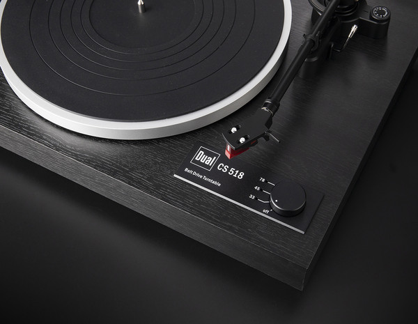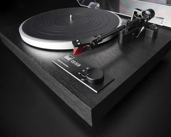 그런 듀얼에서 새롭게 선보인 CS518 턴테이블은 오토 스타트, 오토 스톱 기능이 없는 수동 하이파이 턴테이블로, 사각의 형태에 더스트 커버가 갖춰져 있는 가장 대중적인 턴테이블 모습으로 되어 있다. 참고로 듀얼에서는 수동 모델로 3가지가 준비되어 있는데, 이 제품은 그중 중간에 자리하는 제품이다. CS518은 하위 모델 CS418보다 톤암이 우수하고, CS418과 CS518은 벨트 드라이브 방식인데 반해 상위 모델 CS618Q는 다이렉트 드라이브 모델이다.