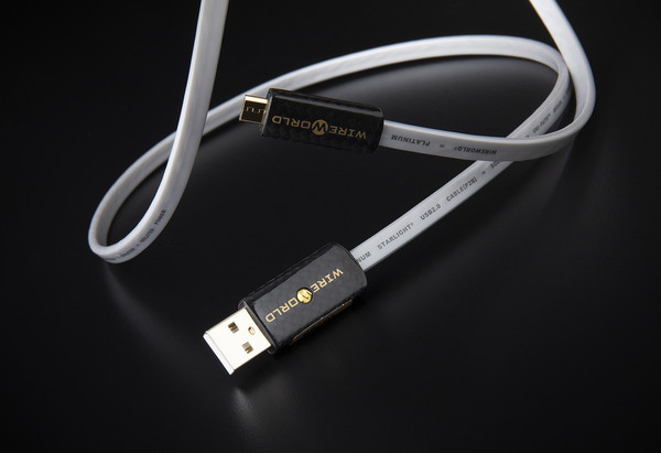 와이어월드의 플래그십 USB 케이블은 플래티넘 스타라이트 8이다. 이 케이블은 동사 최고의 USB 케이블답게 케이블 디자인부터 남다르다. 동사 고유의 ‘Uni-Path’ 디자인을 적용해 5V 전원용 선재가 신호 전달용 선재로부터 완전히 분리되어 있고, 2개의 신호 전달용 선재는 꼬아져 있으면서 다층의 실드가 적용되어 있다. 이 Uni-Path 디자인은 동사의 특유의 기술력이라 할 수 있는 DNA Helix 디자인과 유사한 이점을 제공하며, 전자기 효율과 차폐를 향상시키고 간섭과 신호 손실을 줄여 품질을 개선하는 케이블 디자인이다.