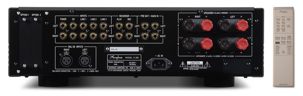 또한 톤 컨트롤, 페이즈 실렉터, 모노·스테레오 전환, 라우드니스, -20dB 어테뉴에이터, 헤드폰 출력, 리모컨 등 다양한 기능도 보인다. 5개의 RCA 입력, 1개의 XLR 입력, 레코더 입·출력, 프리 아웃, 메인 인이 있으며 2조의 스피커 출력 단자를 사용할 수 있다.