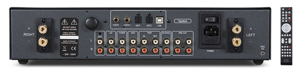 최신 트렌드를 반영, D/A 컨버터가 내장되어 있는 것도 본 기의 특징. AKM의 AK4490 DAC를 사용했으며 USB B 입력으로 PCM 32비트/384kHz, DSD 128까지 처리하고, 옵티컬과 코액셜으로 24비트/192kHz까지 처리한다. 블루투스도 지원한다. 한 마디로 새롭게 업그레이드하면서 디지털부를 대폭 보강한 것이다. 또한 아날로그 입력도 4조로 풍부하고, 테이프 입·출력, 프리 아웃, 바이패스 모두 지원한다. 즉, 다양한 기기를 매칭하는 데 무척 요긴하다.