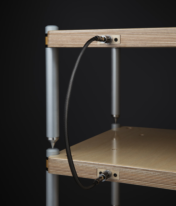 이 오디오 랙에는 상상할 수 없는 장치가 들어 있다. 평범해 보이는 일반 합판 재질로만 보이지만 상부의 랙과 하부의 랙 사이를 케이블로 연결해야 하는데, 마치 트랜스페어런트 같은 고가 오디오 케이블들에 있는 케이블 중간의 블랙박스와 비슷한 원리로 보인다. 목재의 패널 내부에 특이한 개발품이 들어 있으며 당연히 노하우라고 한다. 굳이 꼬치꼬치 물어봐서 밝힌다는 것은 오만한 결례일 것이다.