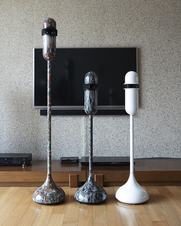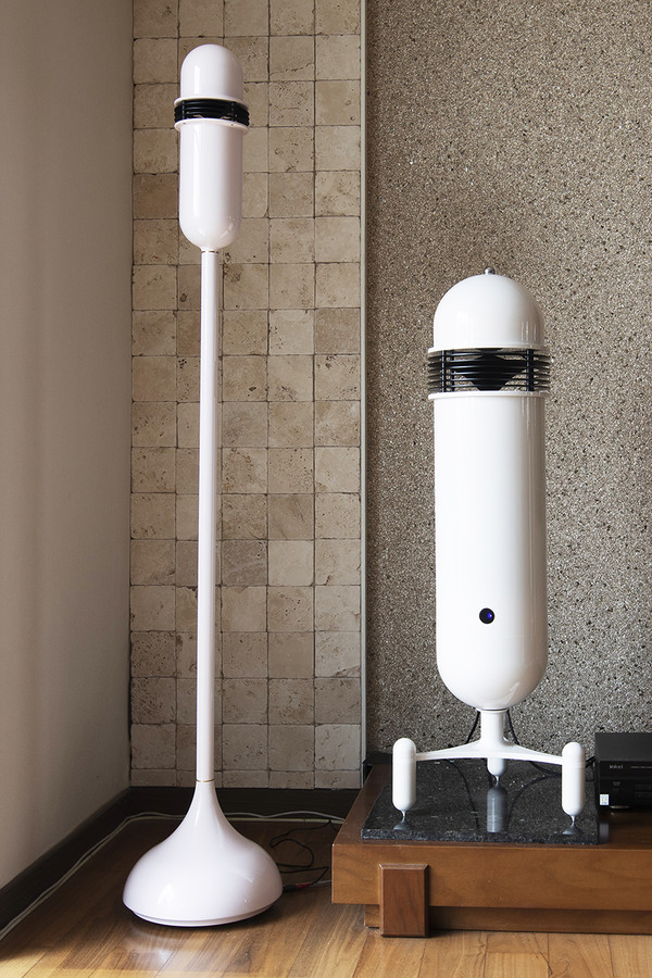 그의 집에서 직접 만든 비콘(Beacon) Ⅰ, Ⅱ 두 가지 무지향 스피커를 만났다. 먼저 비콘 Ⅰ은 6.5인치 드라이버와 트위터로 구성된 2웨이 스피커이며, 인클로저는 소뼈, 아크릴, PVC, 금속이 합성된 소재로 되어 있고 사출 성형으로 만들어졌다. 그리고 블루투스, 와이파이, 디지털, 아날로그 입력 모두 가능한 액티브 스피커다.