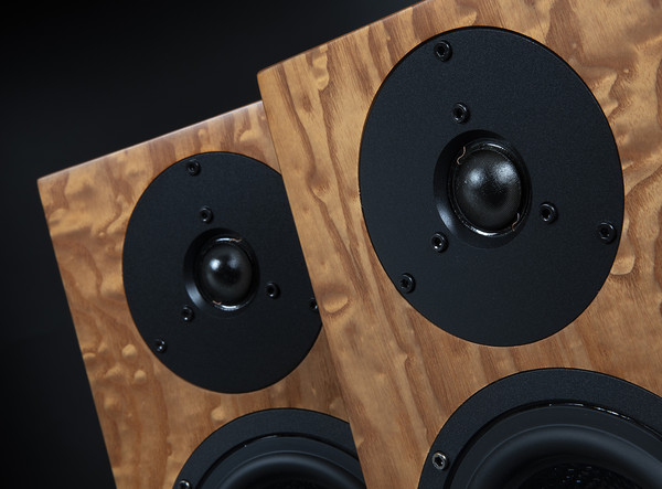 트위터는 2.8cm 구경의 소프트 돔. 통상 1인치를 쓰는 것과는 달리 좀더 크다. 덕분에 25kHz까지 커버하고 있다. 한편 미드·베이스는 13cm 구경의 케블라 콘. 약 5인치 사이즈인데, 55Hz까지 내려간다고 스펙에 나와 있지만, 청감상 그보다 더 내려가는 것 같다. 아마 내 느낌이 맞을 것이다. 높이는 35cm이고, 안길이도 그리 길지 않지만, 제대로 된 스탠드는 필수라고 본다. 한편 본 기가 창업 35주년 기념작에 해당함으로, 다양한 업그레이드가 행해졌다. 최고의 부품이 다량 투입된 점이 특히 돋보인다. 커패시터, 저항, 인덕터 등은 물론이고, 스피커 터미널도 WBT로 상당히 훌륭하다. 감도는 90dB로, 메이커에서는 80W 정도의 앰프 출력을 권하고 있다. 100W짜리 인티앰프라면 충분히 구동하고도 남을 것 같다.