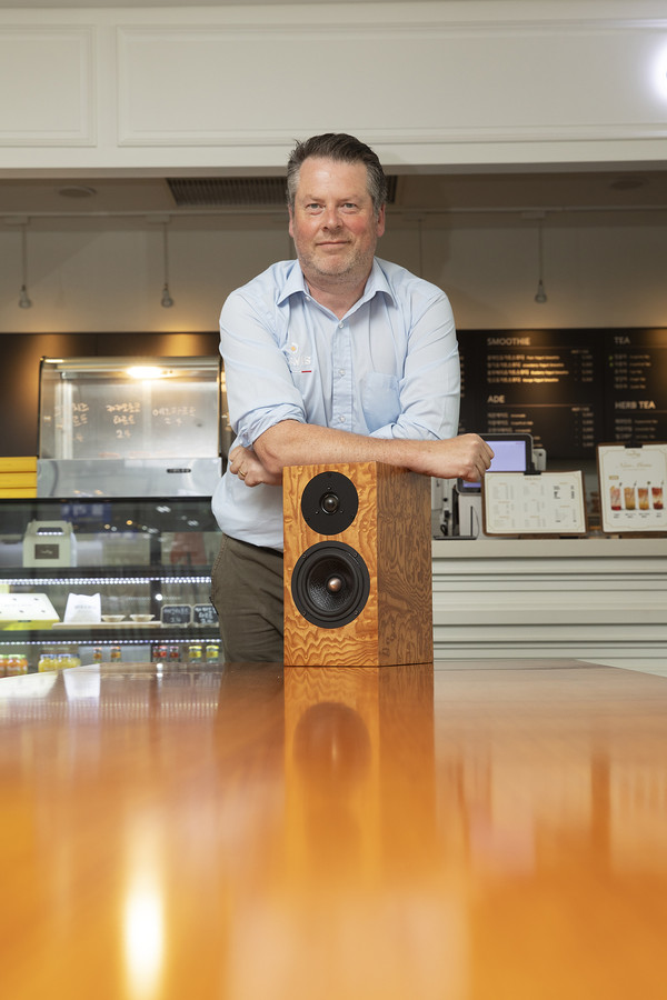 제 부친이 시어에 근무할 때 내놓은 스피커가 하나 있습니다. 바로 갤럭시 200이란 스피커입니다. 거기에 착안해서 만들었습니다. 대신 새로운 기술이 여럿 들어갔죠. 일례로 트위터는 콘 방식입니다. 광대역과 강한 에너지를 표출합니다. 미드레인지는 케블라이고, 우퍼는 카본입니다. 모두 본 기를 위해 특별한 기술이 더해졌습니다. 저는 3웨이 스피커라고 하면, 3개의 드라이버로 구현해야 된다고 봅니다. 드라이버의 수가 더 많아지면, 그만큼 음원이 증가하고, 상황이 복잡해집니다. 따라서 개개 드라이버의 성능이 우수해야 합니다. 그런 방식으로 제작했습니다.