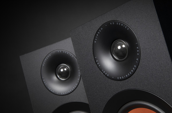 KD-51M 북셀프 스피커는 이전 레퍼런스 시리즈와 비교해 보아도 디자인적으로 제법 차이를 두고 있는데, 이번 KD 시리즈를 위해 완전히 새롭게 설계한 레이아웃들이 엿보인다. 트위터부는 한눈에도 알아볼 수 있게 변화했다. 이전 트랙트릭스 혼 구조에서 벗어나 디호름(Dhorm)이라는 새로운 기술을 투입했다. 역시 혼과 돔의 장점을 가장 효율 좋게 배합한 것인데, 디자인적으로는 2.5cm 트위터 주변부를 혼처럼 깊숙이 파낸 것으로 보인다. 이런 구조의 장점이라면, 고역의 직진성이 좋아지고, 다이내믹 레인지가 한층 넓어지며, 디스토션이 현저히 낮아진다는 것인데, 실제 들어보면 그 성능을 쉽게 체감할 수 있다. 클립쉬 특유의 시원시원한 고역 특성이 여기서 나온다고 해도 과언이 아니다. 유닛의 구성은 12.7cm 폴리파이버 우퍼와 새로운 쿨링 시스템이 적용된 2.5cm 디호름 트위터로 구성되어 있다. 트위터 주변부는 클립쉬 역사를 자랑하듯 EST. 1946이 적혀 있는데, 시선을 집중시키는 나름의 디자인 포인트를 주기도 한다. 주파수 대역은 57Hz-26kHz, 북셀프치고 굉장히 수준 높은 스펙을 자랑한다. 크로스오버는 2kHz. 감도는 87dB로 높은 편이며, 임피던스는 일반적인 8Ω으로 세팅되어 있다. 역시 전면 포트로 설계되었고, 파워 핸들링은 80W인데, 피크는 160W까지 커버한다.