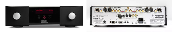 가격 1,350만원 디지털 입력 AES/EBU×1, Optical×2, Coaxial×2, USB B×1 아날로그 입력 RCA×2, Phono×2(MM/MC), XLR×2 아날로그 출력 RCA×1, XLR×1 주파수 응답 20Hz-20kHz(±0.03dB), 2Hz-250kHz(+0.1/-3dB) 출력 레벨 7.5V 이상(RCA), 15V 이상(XLR) S/N비 93dB 이상 THD 0.003% 이하 게인 8dB(RCA, 최대), 14dB(XLR, 최대) 헤드폰 출력 지원 크기(WHD) 43.8×12.6×45.7cm 무게 15.4kg