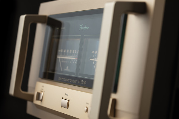 P-7500은 전면에 아큐페이즈의 상징인 대형 아날로그 VU 미터를 설치했고, 입력 게인 조정 노브를 통해 Max, -3dB, -6dB, -12dB로 선택이 가능하기 때문에 어떤 프리앰프와도 매칭이 가능하다. 입력부는 완전한 풀 디퍼런셜 밸런스 회로 방식이며, XLR 단자의 핫, 콜트의 핀 포지션도 선택 가능하다. 그리고 출력부의 경우 PCB 어셈블리에 신뢰성이 뛰어난 금도금 글라스 클로스 불소수지 PCB를 사용했고, 큰 전류가 흐르는 경로에는 금도금 버스 바를 연결해 빠른 반응 속도를 자랑한다. 또한 도시바의 고출력용 바이폴라 출력 트랜지스터를 채널당 10쌍, 푸시풀 구동의 클래스AB 증폭 방식으로 완성시켰다.