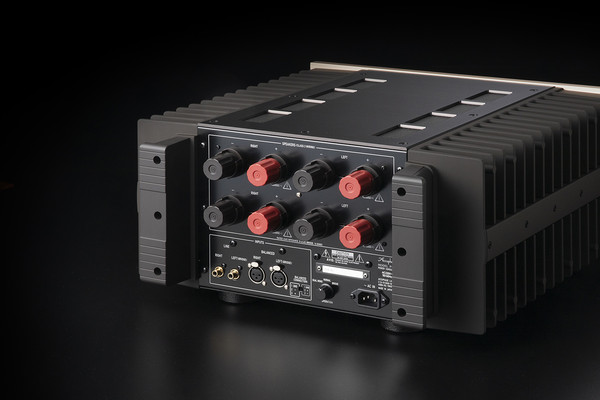 전원부는 대형 토로이달 트랜스포머와 60,000㎌의 대형 필터용 커패시터를 중앙에 배치하고, 좌우 측면은 모노블록 스타일의 히트 싱크와 일체화된 채널별 파워 블록이 자리 잡고 있다. 또한 출력 보호 회로로 새로운 MOSFET 스위칭 회로를 적용해 순간적인 신호의 피크를 차단한다. 바인딩 포스트는 바이 앰핑을 지원, 두 쌍의 대형 바인딩 포스트 터미널이 장착되었으며, 브리지 모드와 바이 앰핑 모드를 선택할 수 있다.