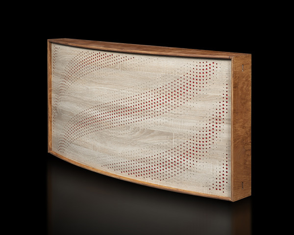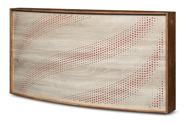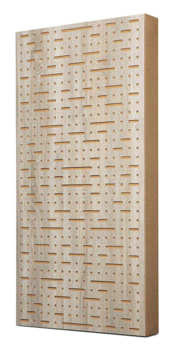 이번에 소개할 동사의 제품은 Acoustand 프리스탠딩 패널, Fiberpro 120 옵소버, Skyfuser 29 디퓨저다. 먼저 Acoustand 프리스탠딩 패널은 120×60×21cm 크기로, 수평 또는 수직으로 벽에 장착하거나 바닥에 두고 사용할 수 있으며, 다양한 마감이 준비되어 있다. 전면의 곡선형 패널에는 구멍으로 독특한 패턴이 그려져 있는데, 이는 고주파수 범위에서 패널에 확산 특성을 추가하기 위함이며 다양한 패턴이 준비되어 있다. 그리고 내부의 15cm 미네랄 울을 통해 음향 특성을 보장하며, 2-6cm 깊이의 공극으로 저주파수에서 시스템의 기능을 향상시킨다. 이 제품은 저주파수 문제를 해결하며, 잔향과 럼블을 줄여 사운드의 다이내믹과 퀄러티를 높이는데, 작은 방에서는 하나 또는 두 개를 사용하면 방의 음향을 크게 바꿀 수 있다.
