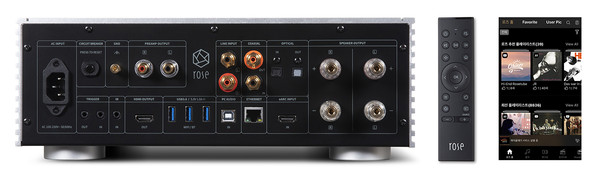 전면의 대형 디스플레이는 언제 보아도 환상적이다. 사양은 무려 12.6인치(1920×515 해상도) 멀티 터치 LCD. 이제야 작은 액정에 하나둘 컬러 앨범 재킷을 지원하는 추세인데, 하이파이 로즈는 이미 오래전부터 이 대형 디스플레이를 적극 활용해온 곳이다. 더구나 이 광활한 액정은 모두 멀티 터치 지원으로, 정말 직관적이며 빠르게 접근할 수 있다. 특히 가장 만족스러운 것은 반응 속도와 인식. 요즘 터치 패널의 제품들이 너무나도 느려서 결국 전용 앱으로만 사용하는 경우가 많은데, RS520의 터치 컨트롤은 그냥 태블릿 수준으로 반응 속도와 인식 모두 정말 만족스럽다. 덕분에 리뷰하는 내내 쭈그리고 앉아서 정말 이것저것 스와이핑하고 눌러보는 재미에 많은 시간이 지나가기도 했다. 물론 전용 앱인 로즈 커넥트를 활용하면 더욱 간편히 조작할 수 있다. 리모컨 역시 제공. 또한 디스플레이 화면을 조정하는 재미도 상당하다. 정말 다양한 레벨 미터를 제공하는데, 이렇게도 디스플레이를 활용할 수 있구나 정말 감탄했다. 그야말로 오디오파일들의 감성을 잘 아는 묘수 중 하나.