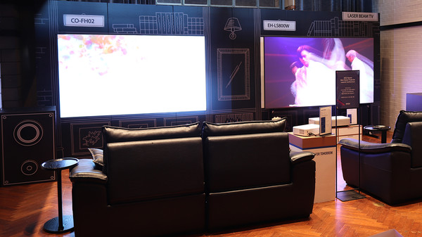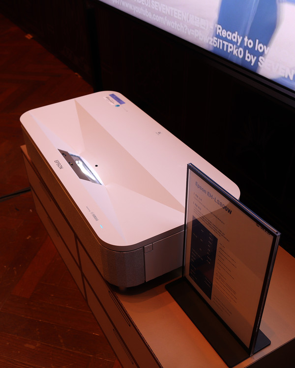 이번 행사에서는 EH-LS12000B 외에도 EH-LS800W를 소개했는데, 이 프로젝터는 벽면으로 부터 9.8cm의 공간이 있으면 100인치를 투사할 수 있는 초단초점 모델이며 3LCD 테크놀로지 탑재, 4K 해상도, 4,000루멘의 컬러·백색 밝기, 최대 150인치까지 투사 가능한 제품이다. 또한 야마하의 2.1채널 스피커를 탑재했고, 6가지 사운드 모드가 있으며, 블루투스 연결을 지원한다. 안드로이드 TV OS와 손쉬운 화면 보정 기능, 자동형 밝기 감지 기능도 탑재했다.