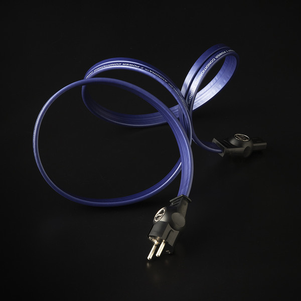 이번에 만난 케이블은 오로라(Aurora) 7 파워 케이블로 보라색으로 되어 있는데, 실버 클래드 OFC를 도체로 사용해 제작되었고, 20가닥의 신호 도체, 12AWG 굵기로 되어 있다. 그리고 Fluxfield라는 와이어월드 고유의 파워 케이블 디자인으로 제작되어 있고, 복합 절연체 컴포실렉스 2가 적용되어 있다. 플러그의 접점은 은도금 구리 합금으로 되어 있으며 몰딩 타입의 단자다.