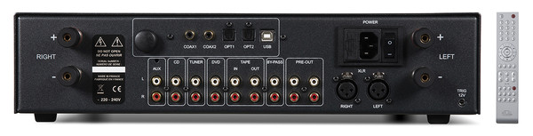 전면 패널은 매우 심플, 좌우 대칭 구성이며 2개의 노브를 포인트로 해서 그 사이에 가로 형 OLED 디스플레이가 위치하고, 좌측 구석에 헤드폰 출력이 있다. 그리고 왼쪽 노브가 실렉터, 오른쪽은 볼륨인데 노브를 누르면 온·오프와 밸런스 세팅도 할 수 있다. 후면에는 4개의 RCA 입력과 1개의 XLR 입력이 있고, 프리 아웃, 테이프 입·출력, 바이패스 입력도 갖추고 있다.