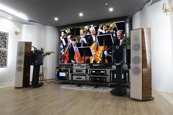 그리고 더 안으로 들어가니 웬만한 오디오 숍의 시청실보다 더 좋은 개인 시청실이 있었다. 이 곳에서 매킨토시 C12000 프리앰프와 MC1.25KW 모노블록 파워 앰프, 보기 드문 하얀 색상이 시선을 사로잡는 소너스 파베르 일 크레모네제 화이트 버전 스피커 등으로 구성된 메인 시스템을 통해 여러 장르의 음악을 들었는데, 그 오디오 시스템의 지극히 편안하고 자연스러운 음이 추운 날씨로 지친 내 몸을 부드럽게 어루만져 주는 느낌을 받았다. 그리고 이 시청실은 그가 직접 설계한 것이라고 하는데, 룸 튜닝이 무척 잘 되어 있었고 여러 음악을 재생하는 동안 부밍 등 여타의 잘못된 시청 공간에서 발생되는 문제점이 전혀 느껴지지 않았다. 또한 엡손의 최신형 4K 프로젝터 EH-LS12000B를 통해 존 윌리엄스가 지휘하고 빈 필이 연주하며 안네-소피 무터가 협연한 <John Williams in Vienna> 공연 실황을 봤는데, 고화질의 영상과 함께하는 음악 감상은 그동안 경험해 보지 못한 새로운 즐거움이었다.