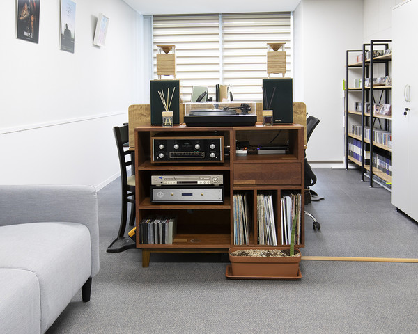 그가 이런 수준 높은 시청 공간을 만들 수 있었던 것은 사실 음악과 함께한 오랜 시간 덕분인 듯싶다. 초등학교 때부터 밴드부를 하면서 음악을 시작했고, 대학에서는 트럼펫을 전공했다. 졸업 후에는 시립 교향악단에서 활동하다가 일본으로 유학을 가게 되었고, 음악 크리에이터, 음향학, 레코딩 엔지니어에 관련된 공부를 했다. 현재는 음원 퍼블리싱 회사와 영화사를 운영 중이다.