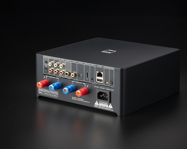 가격 230만원 실효 출력 80W 디지털 입력 Optical×1, Coaxial×1, USB A×1, LAN×1 HDMI(eARC) 지원 아날로그 입력 RCA×2 프리 아웃 지원 서브 아웃 지원 주파수 응답 20Hz-20kHz(±0.18dB) S/N비 84dB 이상 THD+N 0.04% 이하 댐핑 팩터 90 이상 톤 컨트롤 ±6.0dB(Treble, 20kHz), ±6.0dB(Bass, 60Hz) 채널 분리도 93dB 이상(1kHz), 72dB 이상(10kHz) 네트워크 지원 전용 어플리케이션 지원(BluOS) 에어플레이 2 지원 MQA 지원 블루투스 지원(aptX HD) 크기(WHD) 21.8×9.6×26.6cm 무게 4.8kg
