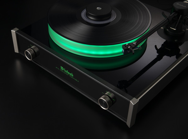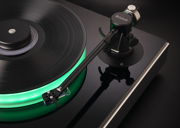 우선 턴테이블에서 중요한 플래터 및 베어링 구조가 인상적인데, 클리어 오디오의 핵심 기술인 CMB 기술을 탑재해 센터 스핀들과 플래터 전체가 강력한 자기력으로 마치 공중 부양하는 효과를 가져와 회전 진동이 없다. 그리고 2.3kg 무게의 실리콘 아크릴로 정밀 제작된 두꺼운 플래터에 매킨토시 브랜드 컬러인 그린 라이팅으로 화려하게 장식해 매킨토시 스타일로 완성되어 회전 시 고급스러운 분위기를 연출한다. 모터는 스테인리스 스틸 브러시가 있는 스위스제 DC 모터를 사용했고, 33 1/3, 45, 78rpm 3가지 속도 조정이 가능하며, 정교한 서보 컨트롤 시스템으로 제어했다.
