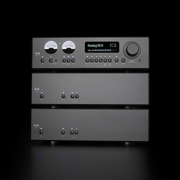 T+A의 DAC 200은 최신 스펙의 D/A 컨버터를 내장한 프리앰프, M 200은 210W(8Ω) 출력을 과시하는 모노블록 파워 앰프로, 이 기종들은 이미 세계적으로 화제를 몰고 온 문제작이다. 특히 기종들이 포함된 시리즈 200은 동사의 기존 디자인을 완벽히 혁신한 제품으로 유명하다. 또한 위압감을 주지 않는 단단하고 콤팩트한 외형과 달리 압도적인 펀치력과 고해상도는 누구라도 감탄할 수준.