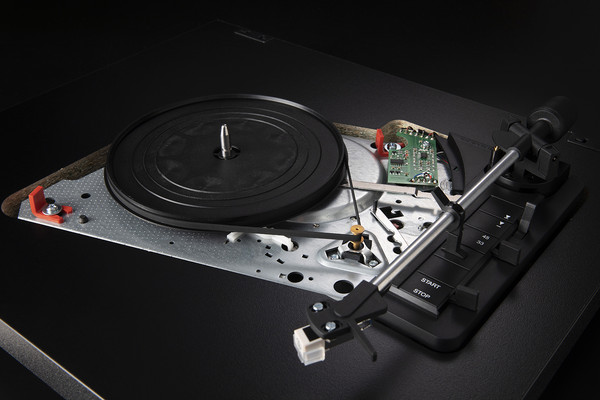 이제 이전에 소개된 동사에서 가장 저렴한 입문기인 F100P와 이번에 소개할 F110P의 차이점을 살펴보자. 가장 큰 차이는 서브 섀시가 있는 턴테이블이라는 것으로, F100P와 다르게 전체 자동 시스템과 톤암 및 댐핑 알루미늄 플래터가 섀시의 나머지 부분과 분리된 플로팅 서브 섀시 플랫폼에 구축되어 있다. 그리고 플래터 아래에 빨간색의 운송 잠금 장치가 2개 있고, 사용 시 이를 제거해야 한다. 또한 전체 자동 시스템과 스위치 부분도 상당히 다르게 생겼고, 톤암을 움직이지 않게 고정하는 잠금 장치도 생겨났다. 플린스 역시 압축 목재에서 MDF로 소재가 달라졌다.