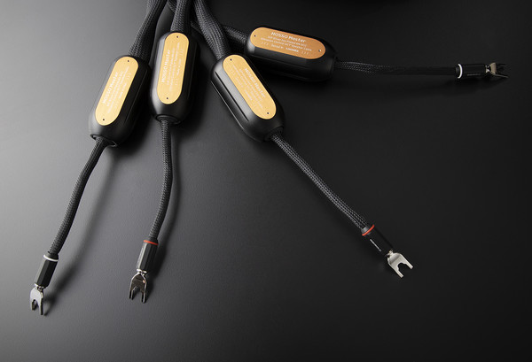 모소 마스터는 동사 스피커 케이블 라인업의 최상위 모델답게 도선의 굵기도 대단하며, +선과 -선이 분리되어 있어 총 4가닥 구성이다. 그리고 동사는 진동 방지 액세서리를 별도로 발매하고 있어서 여기에 상당한 노하우를 지니고 있는데, 이 케이블의 진동 방지를 위한 액세서리 역시 충실하다. 이 진동 방지 액세서리는 단순한 무게 추 같은 것이 아니고 그 중간에 실리콘 재질의 완충재를 투입해 케이블의 진동을 한 번 걸러 준 후 최종적으로 금속을 통해 소멸하도록 디자인되어 있다.