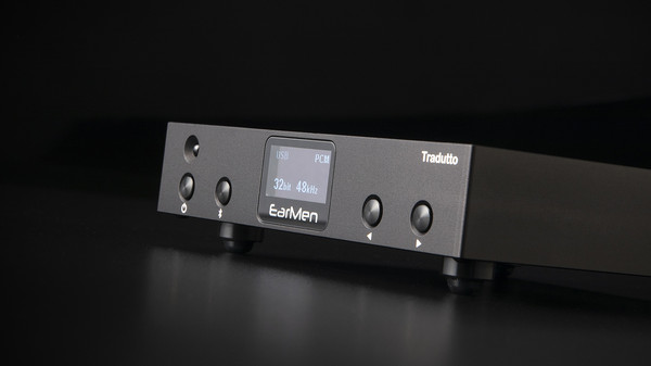 이번에 소개할 이어맨 제품은 트라두토(Tradutto)라는 자그마한 D/A 컨버터다. 첫 인상은 작아도 무척 탄탄하고 깔끔한 외모로 고급스럽게 만들어졌고 마감도 무척 좋아 책상 위에서나 오디오 랙 위에서나 모두 잘 어울릴 것 같아 만족. 그리고 알루미늄 블록을 가공해 만든 섀시는 무척 단단하게 보이며, 전면의 디스플레이는 자그마하지만 정보를 명확하게 볼 수 있다. 제품명 Tradutto는 번역가라는 뜻을 가진 이탈리아어로 디지털 신호를 아날로그 신호로 변역하는 것이 D/A 컨버터라는 의미로 붙인 것 같다.