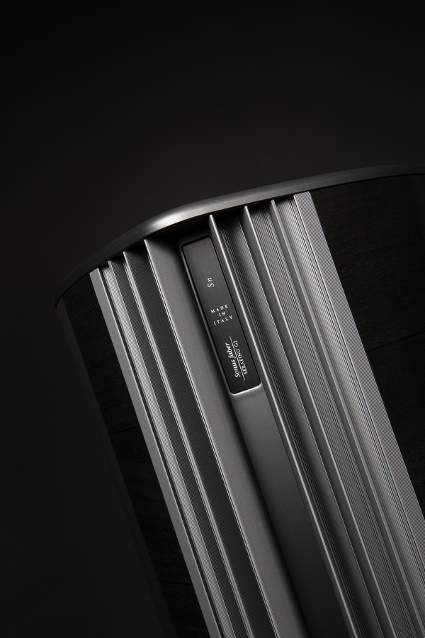 세라피노의 가장 큰 매력은 아마티 스타일을 유지하면서도 사이즈를 줄여 실제 공간적인 제약이 많은 리스닝 환경에서 제격이라는 점이다. 본격적으로 세라피노 G2를 살펴보겠다. 먼저 외관 스타일과 사이즈다. 디자인 콘셉트는 아마티 G5와 패밀리 디자인으로 되어 있으면서도 전체적인 사이즈를 축소한 이미지다. 이를 위해 트위터, 미드레인지는 아마티 G5와 동일하지만 우퍼 사이즈를 줄이고 캐비닛의 내부 용적을 줄여 전체 사이즈를 축소했다. 후면은 동일하게 벤트 홀 방식인 스텔스 울트라플렉스 시스템을 적용해 베이스 리플렉스 포트 역할을 하게 했으며 시각적으로 후면 디자인을 책임지고 있다. 하단 스파이크를 포함한 거치대는 아마티 G5가 분리 조립되는 방식과 달리 일체형으로 디자인되었다. 무엇보다 이탈리아 비첸차에 위치한 공장에서 직접 제작되는 캐비닛은 현악기의 제작 기술에서 유래된 장인 정신을 엿볼 수 있는 영역으로, 스피커이지만 예술 작품을 연상시킨다. 9겹의 나무를 스팀으로 가공해 곡면을 만든 뒤 CNC로 정교하게 제작하며, 오랜 세월 숙련된 기술자들이 수작업으로 9번의 스프레이 및 샌딩 공정을 거쳐 고광택의 화려한 외관을 완성시켰다.