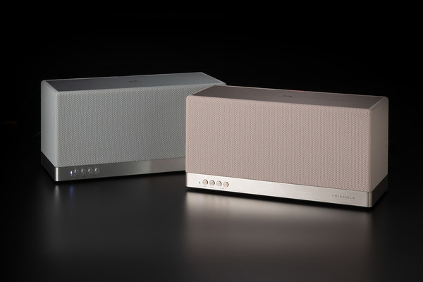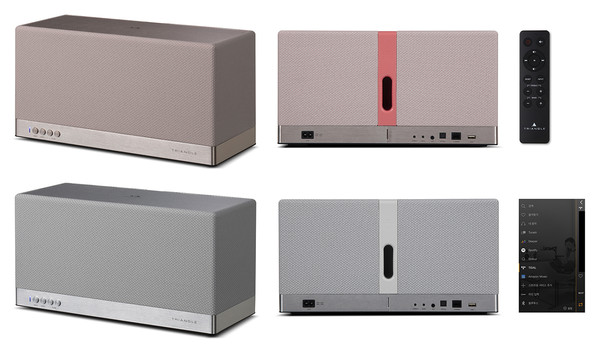 이 제작사 트라이앵글(Triangle)은 프랑스에서 출범, 1980년대부터 스피커를 중점적으로 제작해 온 유럽의 명문이다. 당연히 여러 시리즈 제품이 있는데, 시청기 AIO 3은 동사 액티브 라인업의 유일한 원 박스 무선 스피커로 5kg의 무게, 35.9×19.4×14.9cm 크기로 상당히 무게감 있다. 그리고 싫어하기가 거의 불가능한, 클래식하고 시크한 디자인의 이 제품은 외부 대부분을 직물로 덮었는데, 이 직물은 그 색감이나 퀄러티가 굉장히 매력적이다. 실제 스칸디나비아 브랜드 가브리엘의 제작품인데, 특수 직물로 만들어졌으며 색상 또한 여러 가지가 준비되어 있다. 그린 포레스트, 레드 오커, 파우더 핑크, 프로스트 화이트, 슬레이트 그레이, 블루로, 각각 매력이 뛰어나며, 거실에 놓으면 스칸디나비아 스타일의 근사한 인테리어 포인트가 된다. 그 외 아래쪽과 최상단은 알루미늄 소재를 배치해 패브릭과 절묘한 대비 효과를 보여 주는 것도 각별하고, 간결·우아함은 하단의 질서 있는 원형 버튼에서 완성된다. 표시등은 직물 아래에서 빛난다. 미적 요소가 천재적이다.