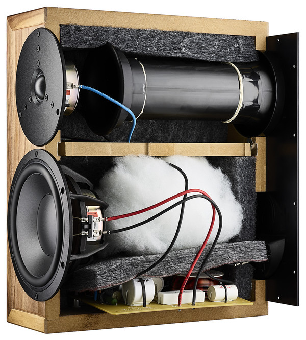 캐비닛 또한 과거 컨투어 1.3SE나 크래프트의 몸체를 떠올리게 하는 레트로 디자인인데, 내부 설계는 고강도이며, 마감 처리는 100% 덴마크 공장의 장인들이 일일이 벗기고 칠하는 수작업의 결과물이다. 전면에 달린 로고 명판도 90년대 다인오디오의 그것을 그대로 사용했다.