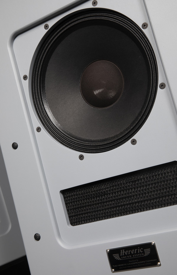 303 헤레틱 동축 드라이버는 원래 녹음 스튜디오용으로 개발된 프로용 모니터 품질인데, 견고한 바스켓, 특수 처리된 에지와 페이퍼 콘을 포함하며, 여기에 유리 섬유 보이스 코일 포머 등 무수한 기술력을 투입했다. 그리고 개방 직조 방식의 더스트 캡 뒤에는 짧고 두꺼운 알루미늄 혼과 폴리에테르 에테르 케톤(PEEK) 플라스틱 돔으로 만든 컴프레션 드라이버가 있다. 또한 헤레틱의 음악성에 대한 비밀 중 하나인 네트워크에는 하이 게이지의 솔렌 공심 코일 인덕터, 문도르프 커패시터, 비유도성 고전력 저항, 밀 스펙 PCB 등 프리미엄 부품을 충분히 사용했다. 제작 시 가장 어려웠던 점은 인클로저 튜닝이었다고 한다. 알텍 캐비닛을 역설계하는 것으로 시작했는데, 기술적으로 수치화되지 않아 수없이 많은 시간을 귀로 튜닝하는 데 바쳤다고 한다.